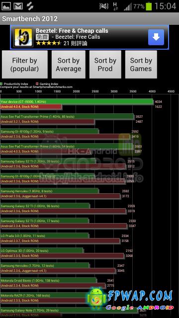 Smartbench 2012 测出 Galaxy S III 的处理器效能极高,但 GPU 就有点逊色,比同样萤幕解析度的手机弱了一大截。