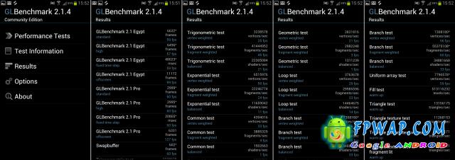 GLBenchmark 2.1.4 详细地测试了 Galaxy S III 的 Mali-400 GPU,发现效能较 Galaxy S II 有很大的进步,在多个测试都取得 59.9fps。