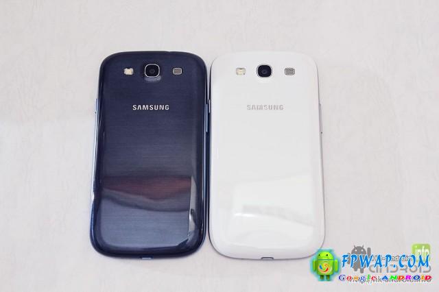 原来 Samsung 有为蓝色 Galaxy S III 的银边重新调色,对比白色版,蓝色版的银边带一点蓝气。