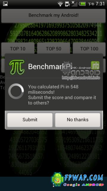 BenchMark Pi : 548 (分数越低越好)