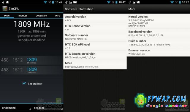一但这强劲的双核心处理器被超频,其效能会到达什么地步?大家可以透过翻閲以下萤幕截图得知超频 1.8GHz 后的 HTC One XL 的效能有多强悍!稍后时间会加推教学,大家万物错过。