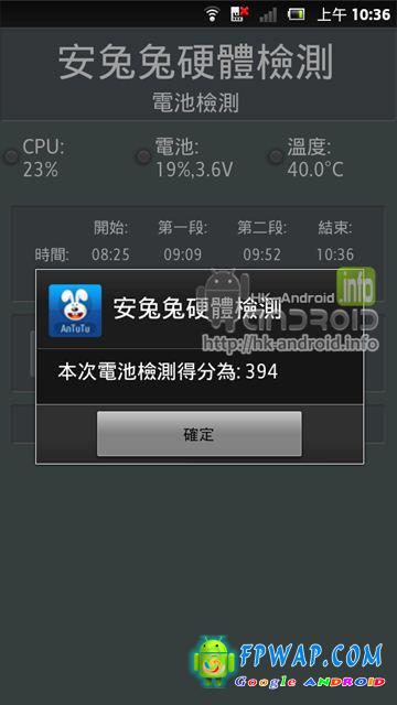 其实 Xperia P 秉承了不可改换电池的传统 , 所以一次性的续航力成了大家的关注点 . 我们仍然沿用安兔兔作测试平台 , 由 100%电开始 , 131 分钟用 81%电 . 如此推算 , 161分钟左右就可以把电用光光 , 约 2小时41分钟 . 时间方面似乎有点低 . 续航力算是比较低一点 .