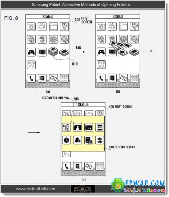 近日 Samsung 就自家图标存放向美国专利局申请了专利,向来 Samsung 又有新的界面视人了,因为新专利将会针对图标的存放,打开放式、移动方式也了很大的改动。目前还不知道还要让大家等多久,因为还是争取专利阶段。也因为 Samsung 这次的专利跟苹果的文件夹传存方式有差异,所以小编猜想可以避免一轮苹果和 Samsung 的专利权大战吧。
