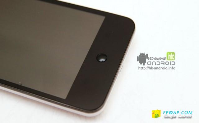 正面的上方是电话的听筒 , 旁边的小圆点是 30万像素的前置镜头