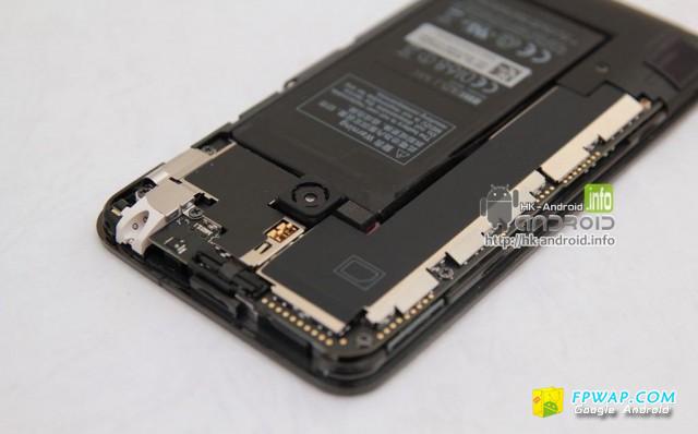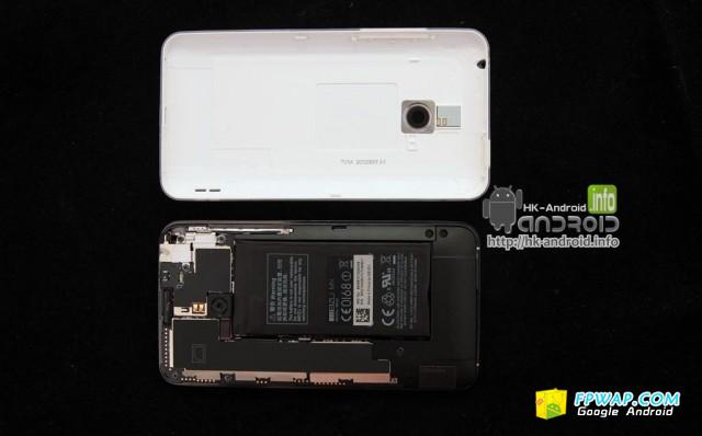 反一反身看背面 , 背面的电池盖用料上感觉像是玻璃 , 当然不是玻璃啦 , 其实是採用双重注塑工艺 , 令质感像玻璃般 , 而十分光滑 .
