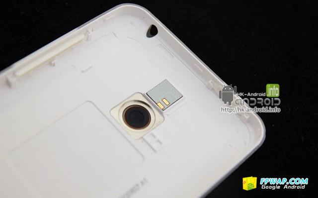 大家可以看到摆电话卡的位置,后置 800万像素镜头以及 3.5mm 耳机插口