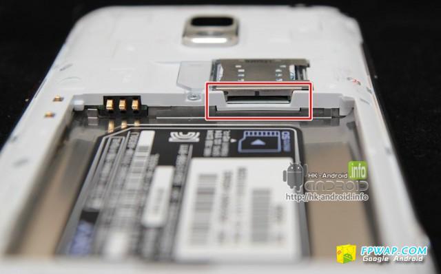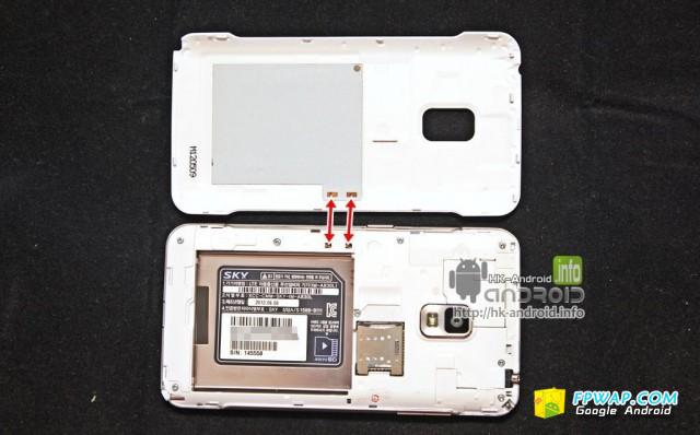 打开电池背盖 , 机身跟背盖有一个金属接触点 , 是用来连接背盖上的 NFC 天线 . 而机身用料十足 , 感觉上很扎实