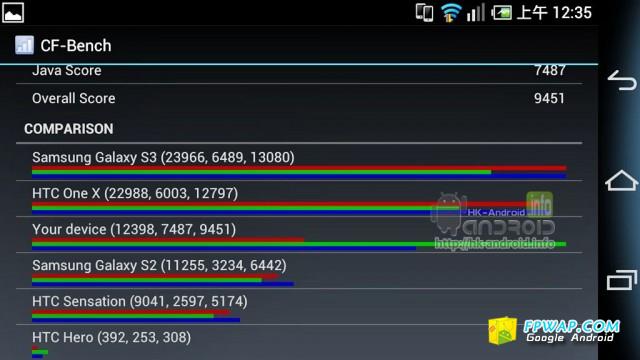 CF-Bench 是同时对不同的硬件情况进行测试 , 包括 内置 Memory 的读取 , Java 的运算力等 . Java 表现比现时的机皇 GS3 还要高