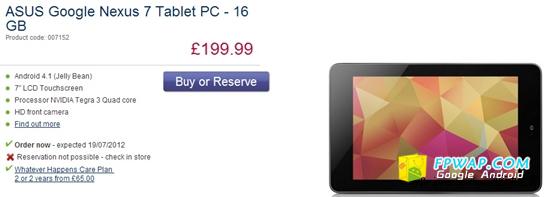 现在每个地方都是 Google Nexus 7 的评测或跑分文章,但这些都要到 Google I/O 2012 大会才能拥有一部 Nexus 7,而且 Nexus 7 凭著它的低售价 + Android 4.1 Jelly Beam 而吸引到不少人的注视。今天得到外国消息指出 Google Nexus 7 将会确定于七月十九日正式发售,而根据之前消息指 Nexus 7 8GB 版售价为 199美元,而 16GB 版本为 249美元。但这个售价可能要被推翻了,因为小编收到消息指在七月十九日英国首发的 Nexus 7 16GB 版本售价为 199.99英镑,为 300多美元,大概 2409港元。英国的售价远比其他地区为贵,小编希望亚洲版的价钱会平吧。