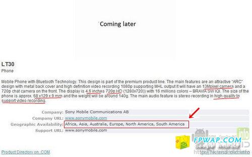 相信很多读者都知道 Sony 今天实行这个机海的战术,继近日 Sony Xperia neo L 和 Sony Xperia go 外,一直在网上流传已久的 LT30p 亦有新的消息流出。据说 LT30p 是属于 Xperia NXT 系列的机款,LT30p 正式型号为 Xperia Z,不同地区也有不同版本的 Xperia Z,包括有 LT30a,LT30at、LT30p、LT30m 和 LT30i。预计将会拥有 1300 像素的镜头,最快可望在八月中发佈。