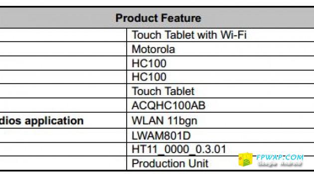 Motorola 自去年底推出 Xyboard 系列的 2 款平板电脑之后,至今没有发佈任何平板电脑产品。正当以为或者是因为被 Google 收购之后,Motorola 的产品策略有所改变,但今日 Motorola 以行动证明她们并没有改变 - 今天 FCC 公佈的信息显示,Motorola 一款型号名为 HC100 的平板电脑样品已送抵 FCC 作认证测试。