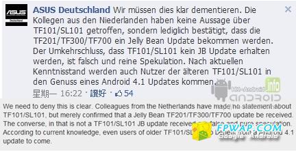 ▲来自伟大 Google 的翻译,ASUS 澄清会为 TF101 和 SL101 平板电脑均升上 Android 4.1 Jelly Bean