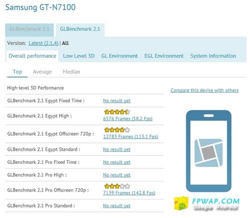 从 GLBenchmark 的资料提到了一款搭载 Mali-400 图形芯片的 Exynos 4412 处理器,这正和 Samsung Galaxy S III一样,因此推断疑似 Galaxy Note II 的 GT-7100 将不会採用纯正 Cortex-A15 架构的核心晶片。