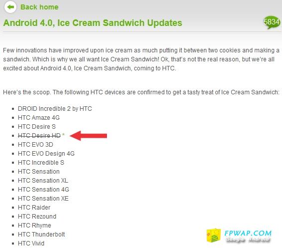 根据之前本网曾为大家报导过一连串有关 HTC Desire HD 升上 Android 4.0 的消息后,今天迎来最新消息指出 HTC 已经正式官方宣佈取消 HTC Desire HD 升上 Andorid 4.0 计划。近日已经可以发现 HTC Android 4.0 List 上已经把 HTC Desire HD 除去了,如果要升上 Android 4.0 的用家可能要尝试其他第三方 ROM 了。
