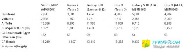 面对市场不断的创新挑战 , 移动处理器的处理力日益强大 , 现时已在市场上使用的最强处理器应该要数 nVidia Tegra3 及 Samsung Exynos 4412 这两颗 四核心处理器 , 跟著还有 Qualcomm Snapdragon S4 MSM8960 A15架构的 1.5GHz 双核 . 不过近日 Qualcomm Snapdragon S4 MSM88960 Pro Cortex A15架构的四核心处理器已经公开了测试 , 其跑分成绩竟然比现时的 Samsung Exynos 4412 (Galaxy S III 使用的)还要强上近一倍 . 下面的跑分结果的确是令人鼓舞 , 预计最快明年 3月就可以投入市场发售 . 高通 Snapdragon S4 MSM88960 Pro 绝对可以成为 高通 翻身之作 .