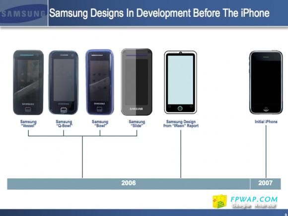 同时 Samsung 更公佈了之前的产品原型智能手机 F700,她们的产品设计显示 Samsung 早在 2006 年之前便??已经开始这方面的研发,所以并不存在抄袭 Apple iPhone 的指控。