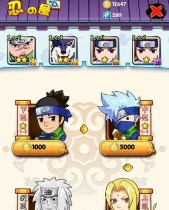 玩家最初级只能从下忍招募开始,当玩家使用了下忍招募后,就有一定的概率激活中忍招募,当玩家使用中忍招募时,就有一定的概率激活上忍招募,以此类推,招募项未被激活时,会处于灰色状态,当被激活时,就会恢复成彩色的状态。
