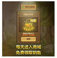 领取方式:打开商城,在第二个页签"每日道具"里面就看到免费钥匙的领取按钮。