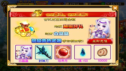 白色的装备就跳过不说了,初期免费给的紫色神将不用装备也能推图到5级的盘丝洞,也就是说从5级开始才是打装备黄金时期。装备也分资质,目前我看到的最好装备就是首冲送的蓝色武器“封神刀”,充值100送的蓝色装备“天蚕宝衣”,500元的蓝色宝物“羊脂玉净瓶”。紫色的只有10000元的装备“蝉翼金丝”,也就是说《咪咪西游》中装备也是按照白色、绿色、蓝色、紫色划分的。